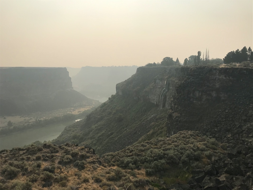 We were planning to head south out of Idaho, but we got stopped in our tracks at Twin Falls. What a gorgeous place! I'm pretty adverse to visiting any city and we certainly didn't plan on spending any time here, but we couldn't resist. It is pretty smoky here due to the wildfires in California and Colorado, and it's also very hot this week. We found a fairground with RV hookups in Jerome just a few miles away. First time we've been hooked up for months!