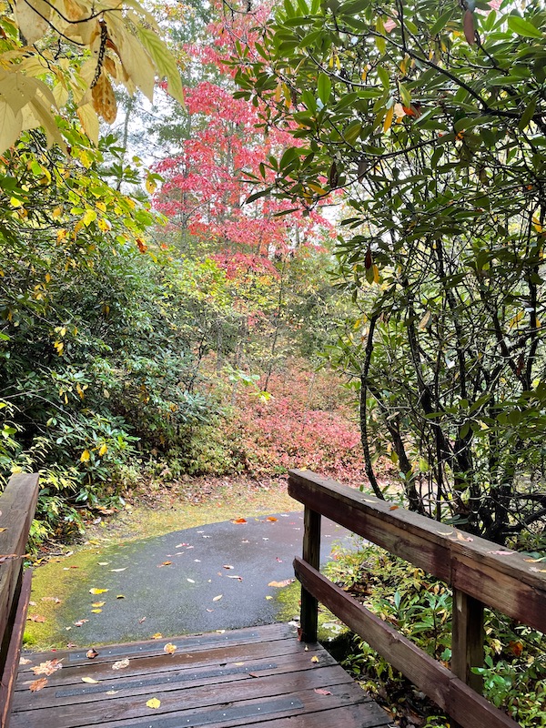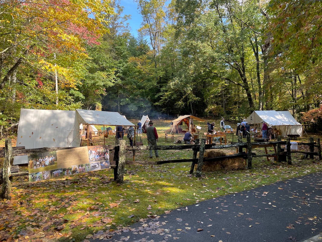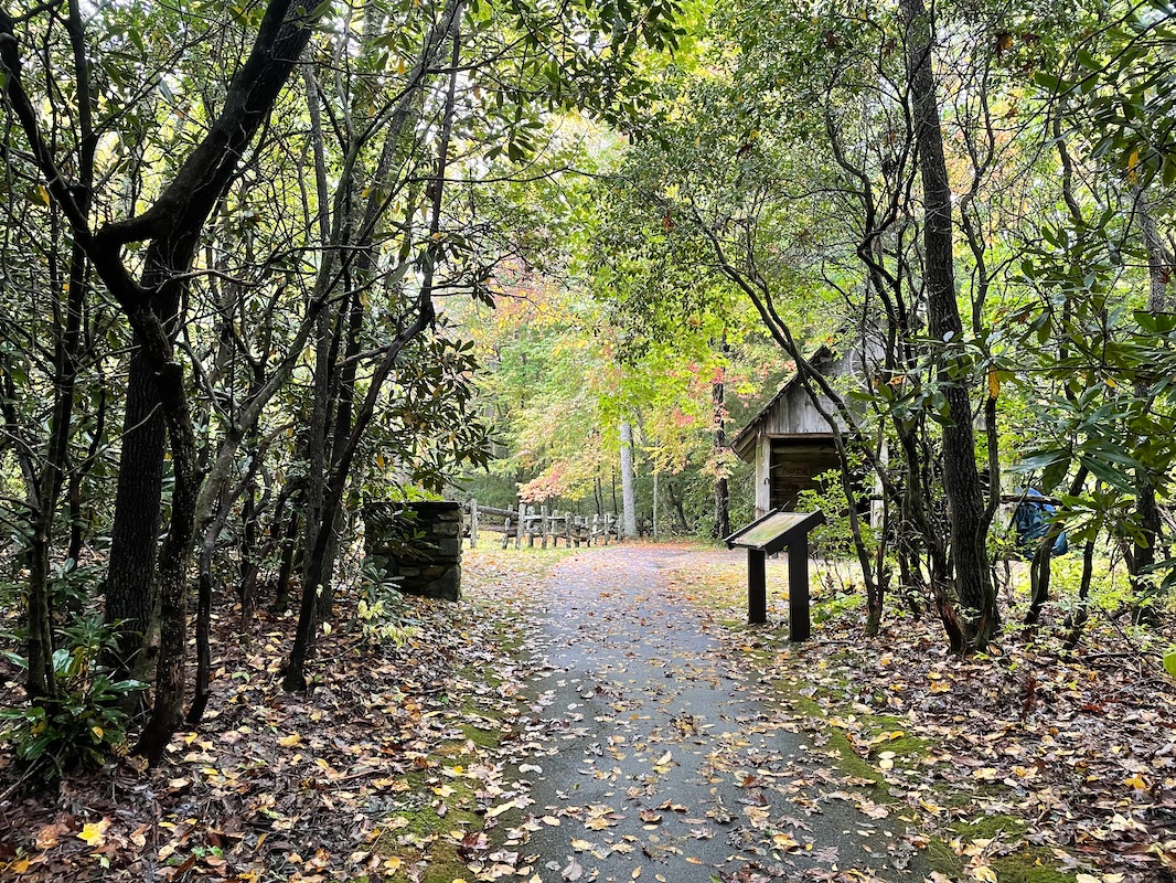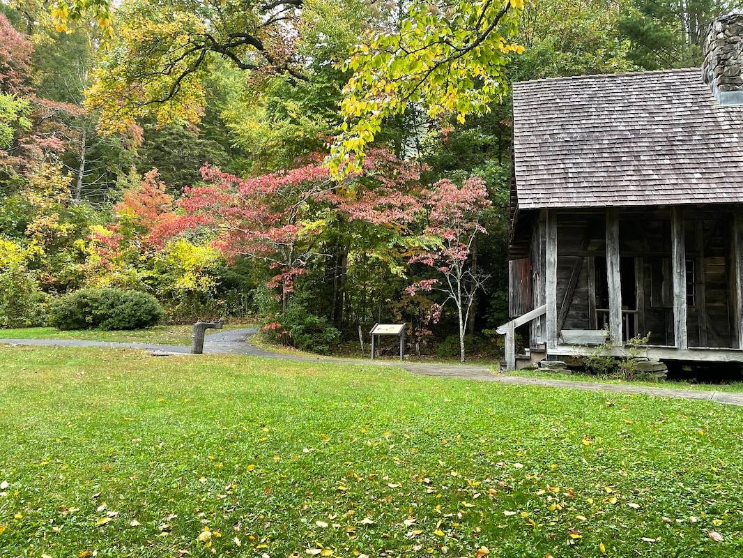We are still at the Cradle of Forestry near the Blue Ridge Parkway where we are volunteering, or work-camping as some call it. The temperatures are cooling down nicely and the colors are starting to appear in our daily walks. As expected, we love being here as autumn settles into western North Carolina. The jobs here at the Cradle are for the most part a nice variety of fun things: selling admissions and gift shop items, greeting visitors, giving directions, explaining the history of the Cradle, and even giving guided tours - something bashful old me never expected to love but has become my favorite job. Check, after thoroughly exhausting all the blueberry-picking opportunities in the area, has also begun working on the maintenance side of things - blowing leaves, opening and closing the buildings on display here, small repairs, etc. Only another four weeks and the Cradle will be closing down for the winter and we'll be moving on. To where, we don't yet know.